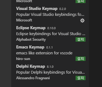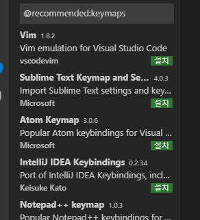 Visual Studio Code에서는 자체적으로 설정된 단축키가 존재하지만, 다른 제품의 기본 단축키 또한 제공합니다.