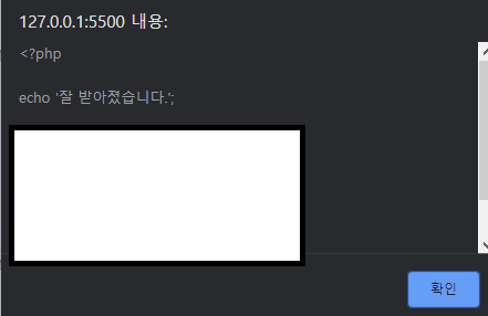 확인 결과 잘 받아졌다. 이제 데이터를 전달할 수 있도록 구조는 json으로 작성해서 값을 넘겼으나 제대로 동작하지 않았다. 다만, 로컬로 확인하니 php가 작동 안해서 다른 것들도 포함되었다. 실제 테스트를 할 땐 php가 작동하는 환경을 구축하거나 귀찮으면 무료 호스팅 업체를 찾아보자. 일단 귀찮아서 이미 뚫어놓은 호스팅이 있어서 거기로 작성함.