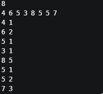 printf("%d %d\n", arr[i], output[i]);