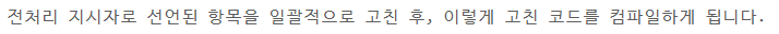 전처리 지시자는 치환의 성격을 띠다 보니, 위 코드는 결국 아래 코드로 변경되어 컴파일이 진행됩니다.