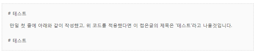 만일 첫 줄에 아래와 같이 작성했고, 위 코드를 적용했다면 이 접은글의 제목은 '테스트'라고 나올것입니다.