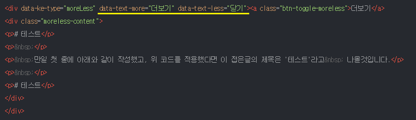 | data-text-more | 접은글을 펼치기 전에 표시할 글자 |