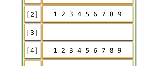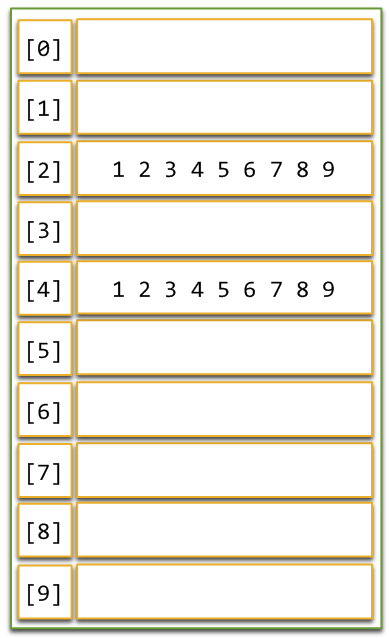 이렇게 되면 arr[i]의 인덱스 길이는 초기화된 요소의 수만큼 이 아닌 [5, 5, 5, 5]가 됩니다. 0번, 2번 인덱스가 각각 4, 8Byte의 공간을 낭비하게 되는 것입니다.