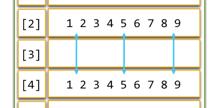넷째로, 요소 값의 교환이 느려질 수 있습니다. 배열은 정적인 것으로서 각 요소를 가리키는 대상의 값은 부동입니다. 그러나 동적 배열의 경우에는 각 하위 배열의 메모리 블록이 다릅니다. 따라서 메모리 블록을 관리하는 상위 블록에서 실제 값을 가지고 있는 메모리 블록 주소를 서로 바꾸어주면 값의 교환을 흉내 낼 수 있으며 오류 없이 제 기능을 수행할 수 있게 됩니다.