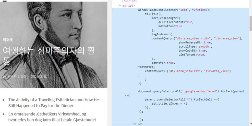 이 글인데요, 제대로 스크립트를 적용했는지 보겠습니다.