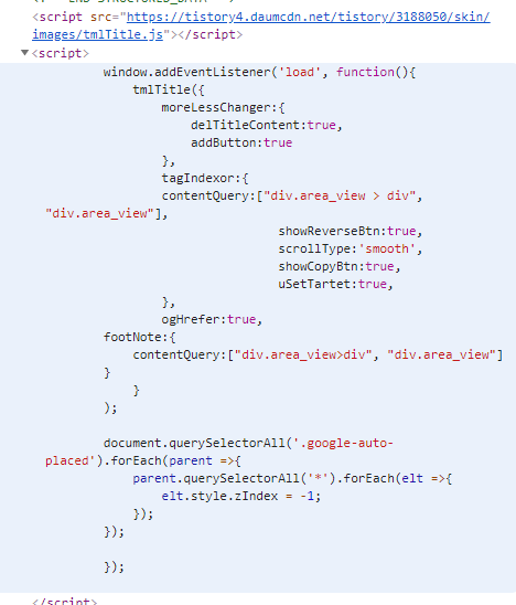 이 스크립트를 적용하는 것으로 모든 글에 적용된다면 좋겠지만, 아쉽게도 이 스크립트는 적용만 한다고 동작하지 않습니다. 동작의 실행시킬 트리거가 필요합니다.