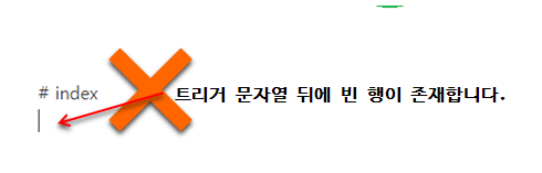 빈 행도 존재해선 안됩니다. 꼭! 트리거 문자열은 글의 맨 마지막에 작성하세요!
