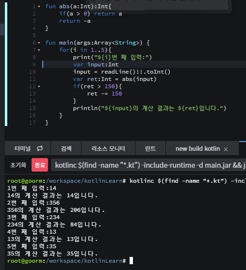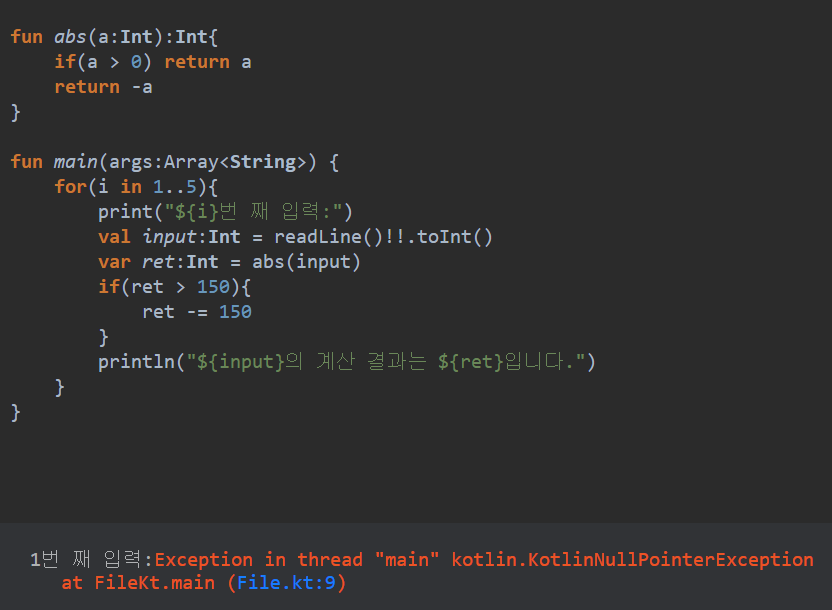 println("${input}의 계산 결과는 ${ret}입니다.")