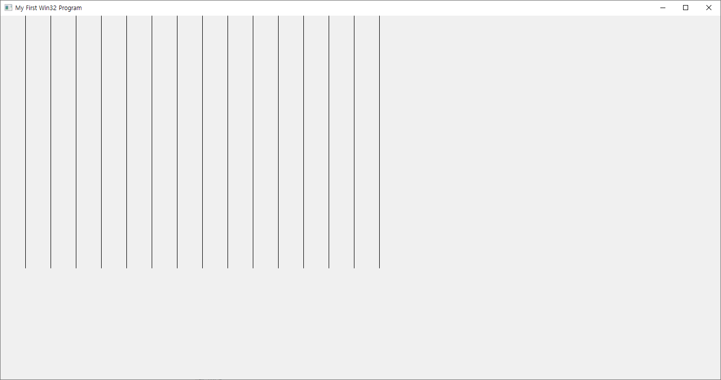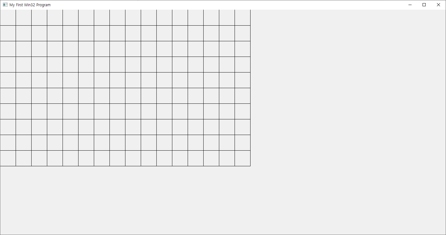 LRESULT OnPaint(HWND hwnd) { PAINTSTRUCT ps; HDC hdc = BeginPaint(hwnd, &ps); for (int i = 1; i <= 800 / 50; ++i) { MoveToEx(hdc, i * 50 -1 , 0, nullptr); LineTo(hdc, i * 50 -1 , 500); } for (int i = 1; i <= 500 / 50; ++i) { MoveToEx(hdc, 0, i * 50, nullptr); LineTo(hdc, 800, i * 50); } return EndPaint(hwnd, &ps); }