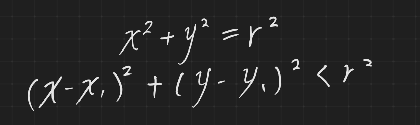 여기에선 약간의 수학 공식이 필요합니다. 원의 방정식이 말이죠.