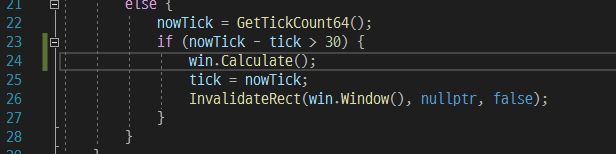 제공된 코드에는 이미 실시간으로 업데이트를 하도록 구성되어 있습니다. 특정 시점이 될 때마다 계속해서 윈도우를 새로 그리도록 하고 있죠.
