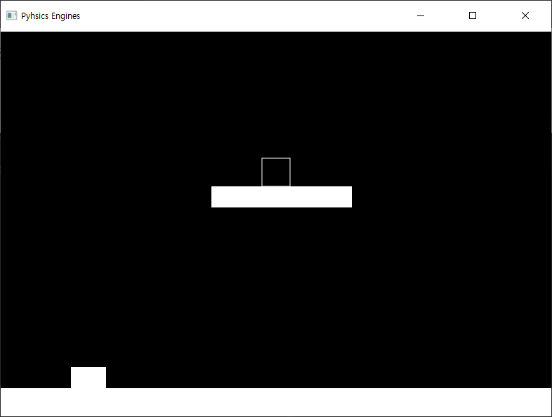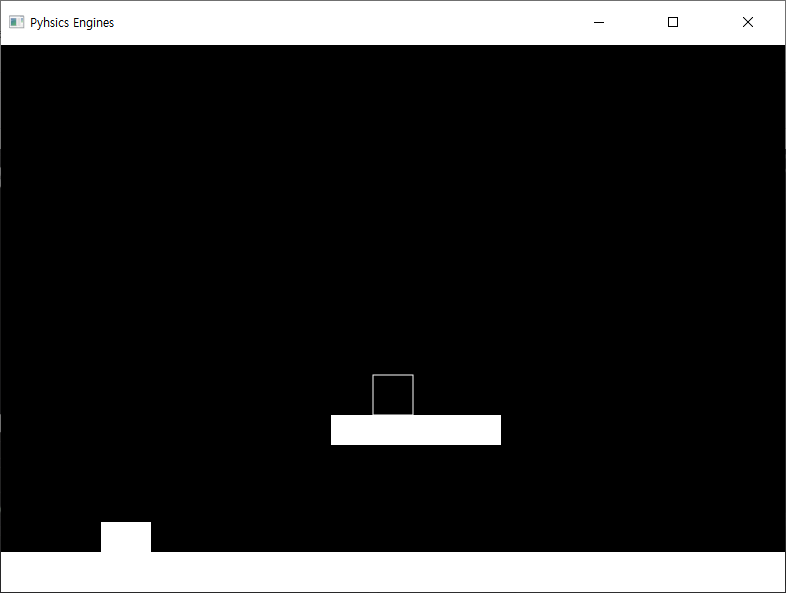 지금은 이미지를 그리도록만 했으니 위 사각형이 계속해서 떨어지는 것이 당연합니다. 이제 계속 떨어지지 않고 그려놓은 하얀색 사각형 위에 안착하도록 코드를 구성하겠습니다.