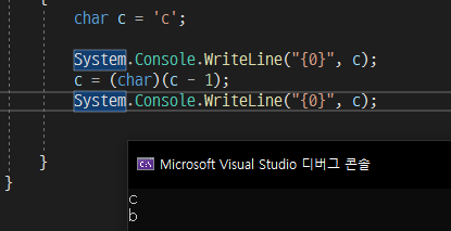 문자는 ASCII와 같이 특정 숫자를 특정 문자로 1:1 매핑한 것이기 때문에 문자 값에 수를 더하거나 빼서 문자를 변경할 수 있다.