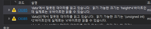 VS ERROR C6385: var에서 잘못된 데이터를 읽고 있습니다. 읽기 가능한 크기는 'var*4'바이트인데 실제로는 n바이트만 읽을 수 있습니다.
