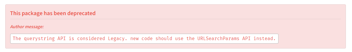 querystring deprecated로 검색을 하면 npm 문서상 대체할 수 있는 문법, 혹은 기능을 제안해준다.
